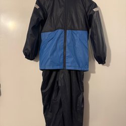 Rosa Didriksons overall i storlek 90, med avtagbar huva och reflexdetaljer. Overallen har två fickor på bröstet och en dragkedjeficka på vänster ben. Det finns ett litet hål vid sidan av ena knäet, går säkert att sy ihop, inget som stör funktionen i sig.