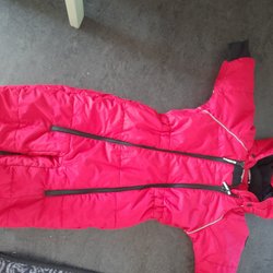 Röd overall med dragkedja framtill och hög krage. Den har detaljer i grått och blått på axlarna samt resår i midjan och bensluten. Har även eflexdetaljer.