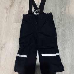 Fina Svarta termobyxor med dragkedjor längs benen och fickor med dragkedja fram. Resår och dragsko i midjan. Djur och rökfritt hem. Storlek 160.