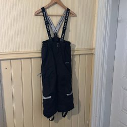 Ett par svarta termobyxor med resår i midjan och reflexdetaljer på benen. Byxorna har justerbara band vid bensluten.
