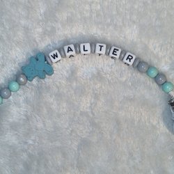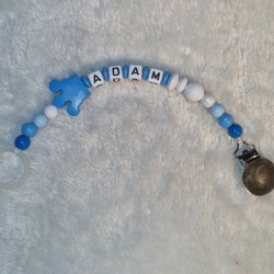 Mörkblå byxor med resår i midjan och knappstängning.