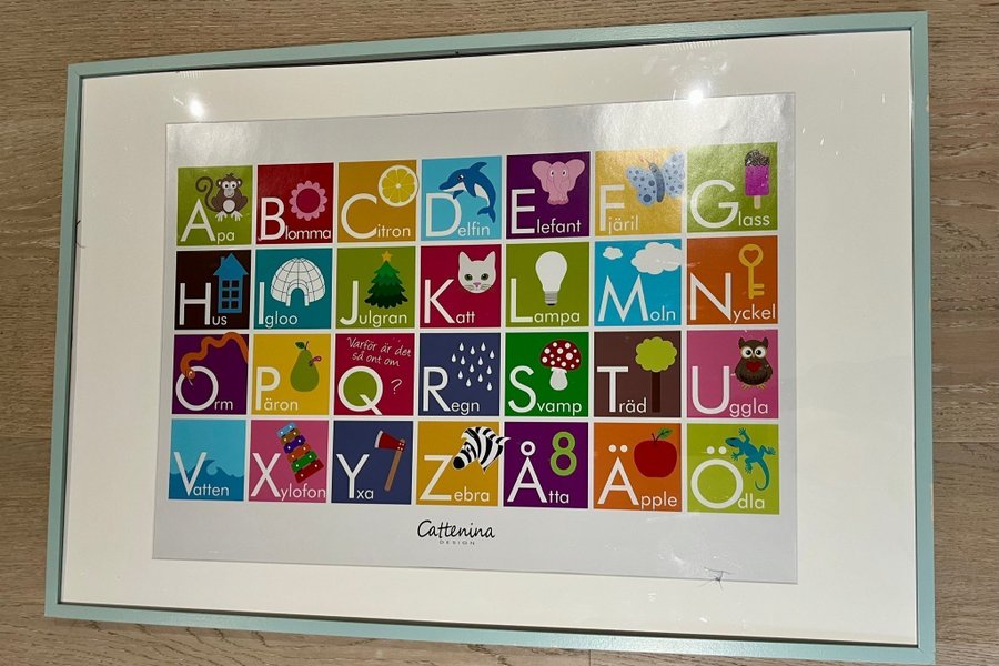 En ABC poster med alfabetet och illustrationer. OBS! Ram ingår ej!