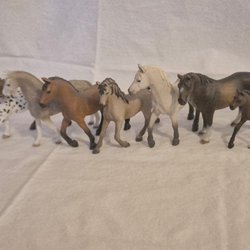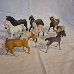 En samling av Schleich hästar! 5 hästar samt sadel och träns ingår. Perfekt för lek eller samling. Innehåller olika raser och färger.