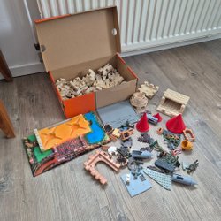Olika leksaker: Pussel, mini biljard, magi trick låda, walkie talkie och annat.