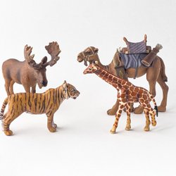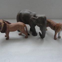 Två tigerfigurer i plast. En större tiger och en tigerunge.