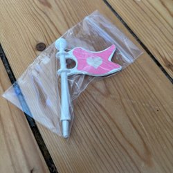 Troligen ett tillbehör till leksak. Står 2005, mattel ink, China på baksidan