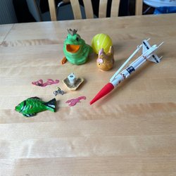 Blandade små leksaker / figurer för dockhus. Perfekt för lek och samling.