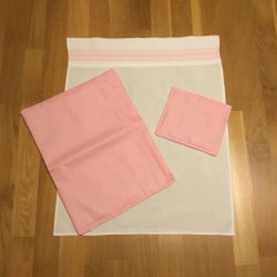 Söt babydocka som har slutna ögon. Har ett märke under hakan som jag inte får bort, se sista bilden. Kläderna är nytvättade.