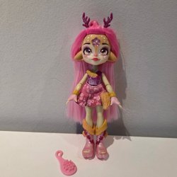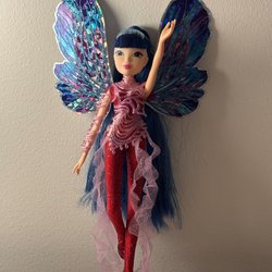 Docka med blont hår och klänning med solrosor. Märkt 2015 Mattel, Made in Indonesia. Cirka 30 cm lång.