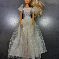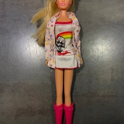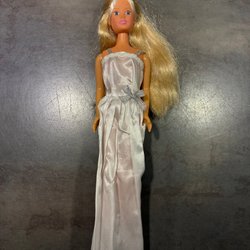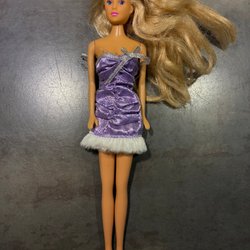 Simba docka med blont hår i en hästsvans. Hon har en rosa tröja och blå byxor. 12cm