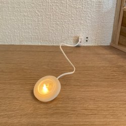 En rund miniatyr matta i svart plast för dockhuset.