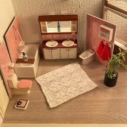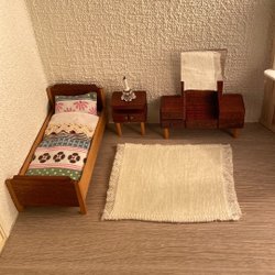 Dockskåpsmöblerna / mattan i miniatyr är begagnad. Bilderna är en del av beskrivningen, så titta noga innan budgivning / köp. Samfraktar gärna med mina andra annonser.