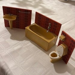 Dockskåpsmöblerna / badrummet i miniatyr är begagnat och bilderna är en del av beskrivningen, så titta noga innan budgivning / köp. Samfraktar gärna med mina andra annonser.