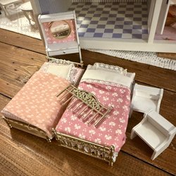 Små färgskav förekommer ofta på gamla dockskåps möbler då färgen flagnar med åren