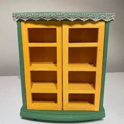 Ett miniatyr skåp i trä. Perfekt för samlare av miniatyrer eller som en dekorativ detalj i ett dockhus.