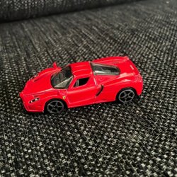 En röd leksaksbil, perfekt för samlare eller barn.