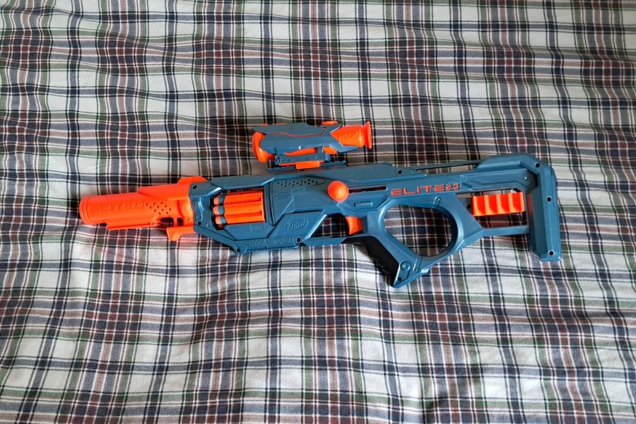 Jag säljer denna här Nerf Elite 2.0 Eaglepoint RD-8 Blaster med avtagbart kikarsikte och pipa.