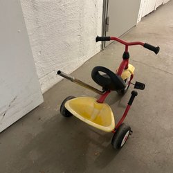 Säljer en klassisk röd åkbil/gåbil för mindre barn. Perfekt för inomhuslek eller på gården. Stabil modell med ratt, fyra hjul och låg sitthöjd – lätt för barnet att ta sig i och ur själv.