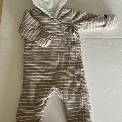 Svart gravidjacka med dragkedjor framtill och dragsko i midjan. Jackan har fickor och en huva med fuskpäls. Luvan är avtagbar och dragkedjan är dubbel.