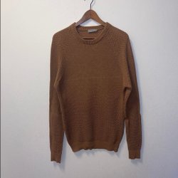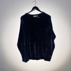 Blå tröja med en bröstficka och ribbstickning vid ärmslut och nederkant.