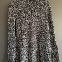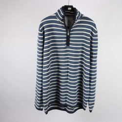 Vit tröja med långa ärmar och svarta vågiga ränder nedtill. Den har en rund halsringning och en avslappnad passform.