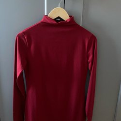 Grå tröja med hög krage. Tröjan har ribbade muddar i ärmslut och nederkant.