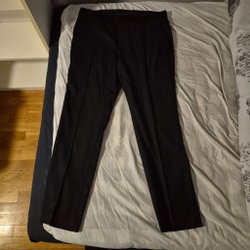 Ett par klassiska svarta byxor. Byxorna har en tidlös design som passar bra för både vardag och mer formella tillfällen. De har en rak passform och en bekväm midja.