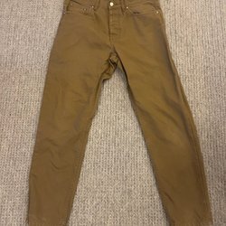 Ett par beiga byxor med pressveck. these glory days! Avslappnad passform