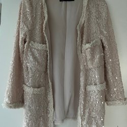 Klassisk kavaj med ett rutigt mönster. Den har en tvåknäppning fram och fickor.