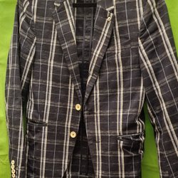 Grå rutig kavaj från Zara Man. Kavajen har en bröstficka och två fickor fram.