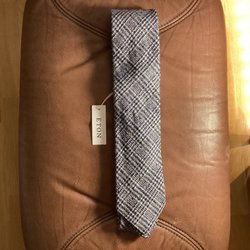 Elegant grå slips med ett distinkt mönster av rektanglar och linjer. Slipsen är tillverkad i Italien och har en klassisk design som passar väl till både formella och mer avslappnade tillfällen. Bredd 10 cm.