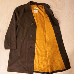Brun kappa med fickor och krage. Kappan har en klassisk och tidlös design.