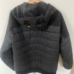 Svart dubbelknäppt jacka med åtta knappar framtill. Jackan har en klassisk krage och två fickor i midjehöjd. Passar bra för en stilren look. Storlek XL men modellerna är M och S.
