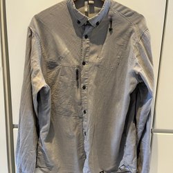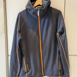 Relativt välanvänd jacka men där allt fungerar som det ska. Finns spår av användning och slitage. De två främsta sakerna är det som är med på bilderna: en skada i tyget på vänster axel som lagats samt en liten reva i tyget på magpartiet.
