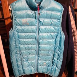 Men’s hiking hooded down jacket -5°C MH100 - ljusblå jacka med huva och dragkedja framtill. Jackan har två fickor med dragkedja. Insulation: 800 fill power ethical down (RDS certified) vikt ca: 400g