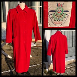 Snygg röd klänning i polyester med stretch. Fejkfickor fram. Bra skick.