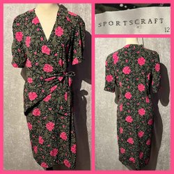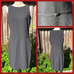 Fin svart klänning 90-tal från Kurt Kellermann. Storleksmärkt 40. Knäppning fram och i ärmslut. Fickor fram. Knyts i ryggen. Axelvaddar. Bra skick.