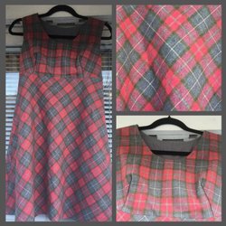 Härlig rutig klänning i ull. Dragkedja med ögla fram. Bra skick.