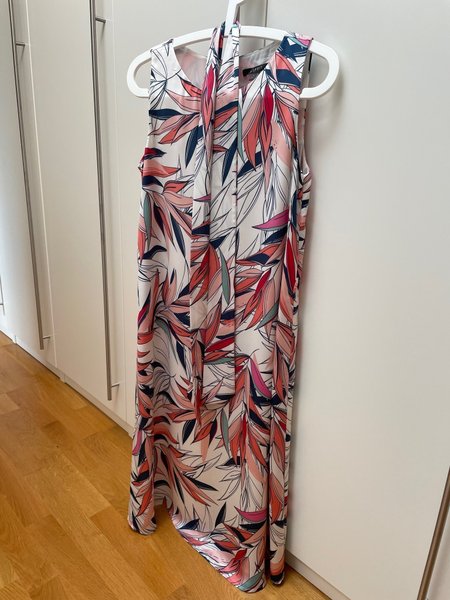 Klänning i lite blankt tyg, fint fall, skärp i midjan. Stl 36. Använd tre gånger. Mycket bra skick.