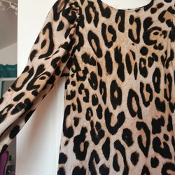 Beige, svart klänning