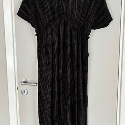 Vacker rak klänning med trekvartslånga ärmar. Dragkedja i ryggen.