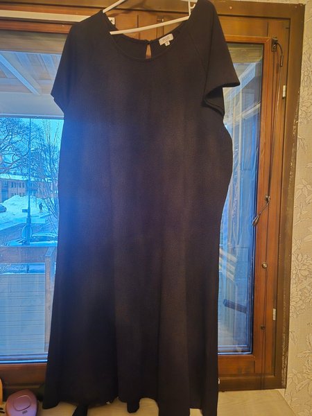 Svart klänning med kort ärm. Klänningen har en rund halsringning och en liten öppning baktill.