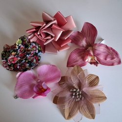 Klänning med långa ärmar och smock över bysten. Klänningen har ett blommigt mönster i rött och grönt på svart botten. Ärmarna avslutas med resår vid handlederna.