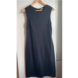Djupblå med glittrande trådar, i elastisk trikåmaterial med underklänning, storlek 2 (38)