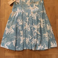 Elegant klänning med ett vackert blommönster i olika färger. Klänningen har korta ärmar med knytband och en rund halsringning. Perfekt för både vardag och fest.