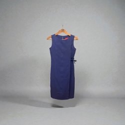 Ärmlös klänning i en blå/lila färg. Klänningen har en knutdetalj i midjan. Lappar saknas men är en Large.