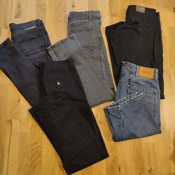 En svart kaftan med härliga blå mönster. Lång och flowig, skönt tunnt tyg! Storlekslappen säger 5XL men det stämmer EJ!! Jag uppskattar ett en storlek M kan bära denna. Okänt märke. Knappt använd! En extra tvätt hade inte skadat så den legat i säck då den sollats bort.