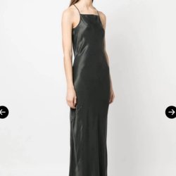Ribbad klänning. Lång, figurnära klänning. Ribbad trikå av viskoblandning. Klänningen har lätt draperad ringning och smala axelband.