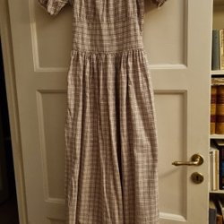 Långärmad lång klänning med ett färgstarkt blommönster i olika nyanser. Klänningen har en rund halsringning och en avslappnad passform. Klänningen är fotsid och har fickor I sidorna. En liten reva vid ena fickan har lagats och syns bara om man tittar noga, inte alls när klänningen bärs.Mått tvärs över bysten ca 88cm.