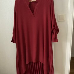 Svart klänning med huva och knappar framtill. Långa ärmar som kan fästas upp med en knapp. Använd vid ett fåtal tillfällen. Material linne, viskos.